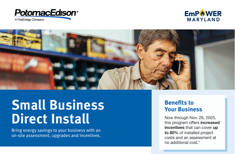 Potomac Edison’s Small Business Direct Install Program provides simple solutions to saving energy and improving efficiency. Our trusted team of Closed Network Providers offers a seamless, turnkey solution, managing everything from an assessment at no additional cost to the final installation, guaranteeing top-quality service every step of the way. Contact us today to learn more.